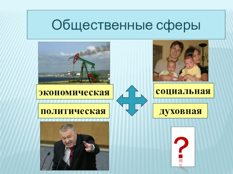 Общественные сферысоциальнаяэкономическая духовнаяполитическая