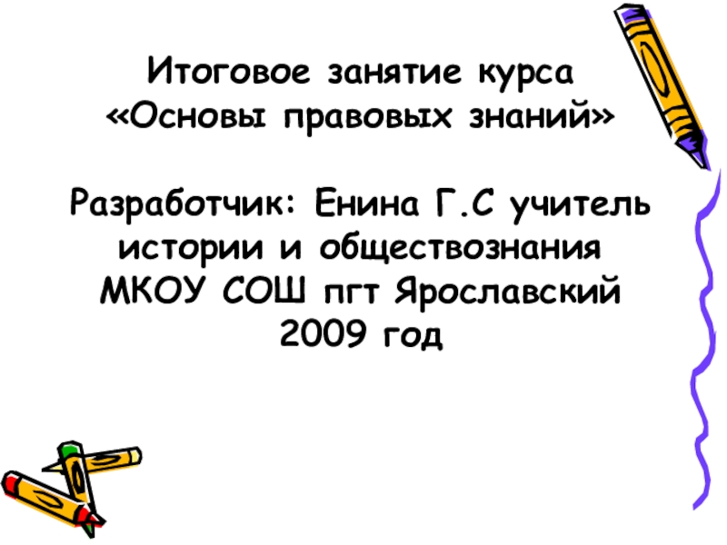 Слайд 1Итоговое занятие курса «Основы правовых знаний» Разработчик: Енина Г.С учитель истории и