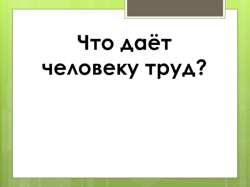 Слайд 7Что даёт человеку труд?