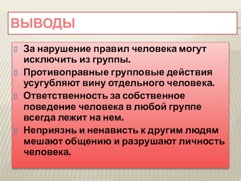 Ответственность за собственное поведение человека в любой группе всегда лежит на нем.