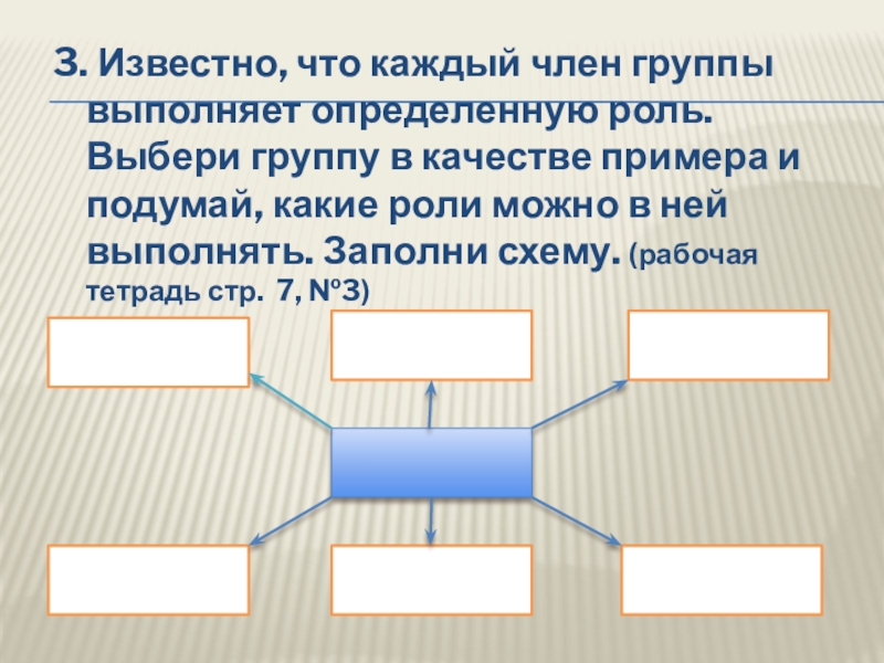 в качестве примера и подумай, какие роли можно в ней выполнять. Заполни схему. (рабочая тетрадь стр. 7, №3)