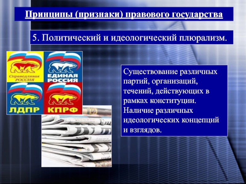 течений, действующих в рамках конституции. Наличие различных идеологических концепций и взглядов.