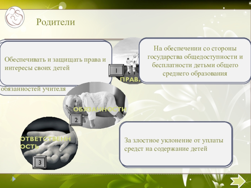 Обеспечивать и защищать права и интересы своих детей