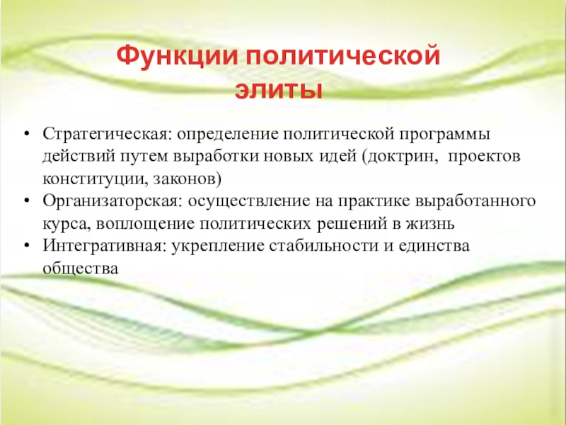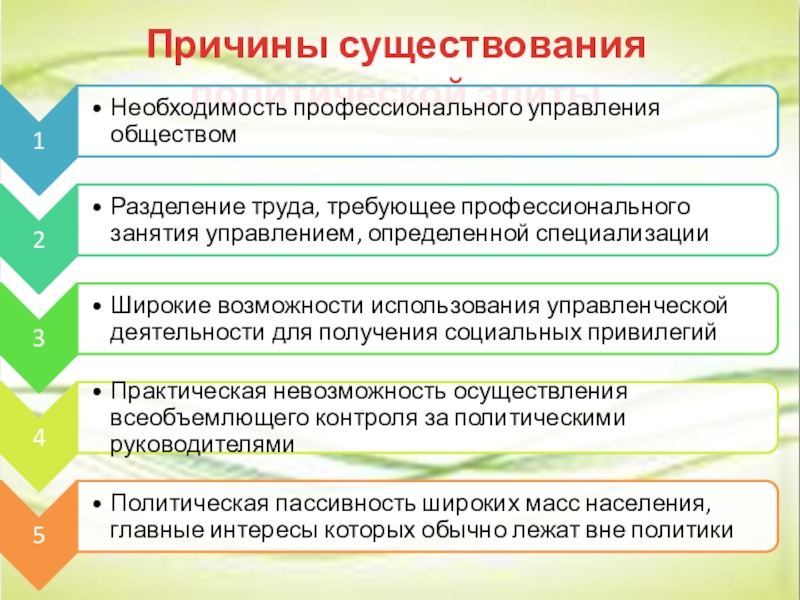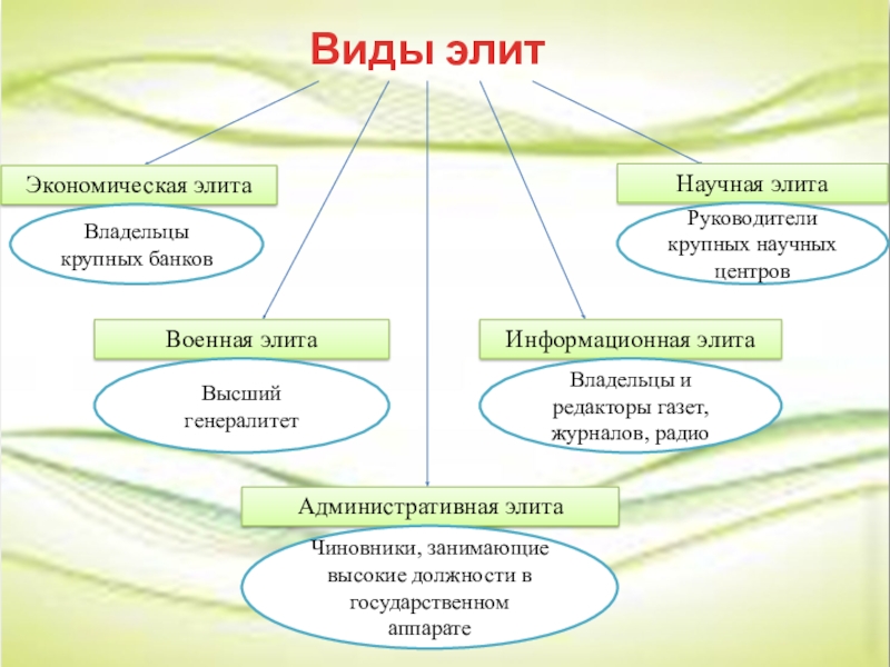 Оппозиционная элита – авторитетные, способные к управленческой деятельности люди, которым их социальный статус и существующие в обществе барьеры перекрыли доступ к сфере управления
