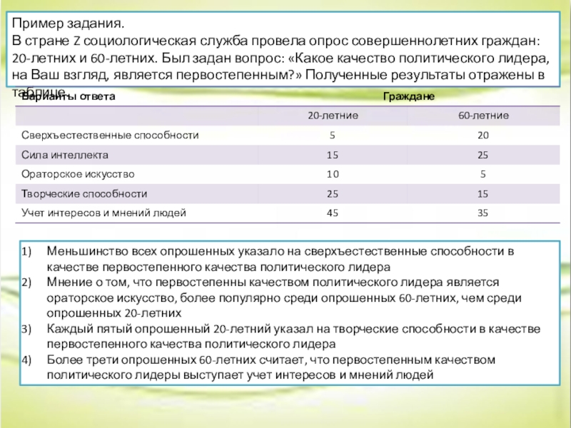 Каждый пятый опрошенный 20-летний указал на творческие способности в качестве первостепенного качества политического лидера