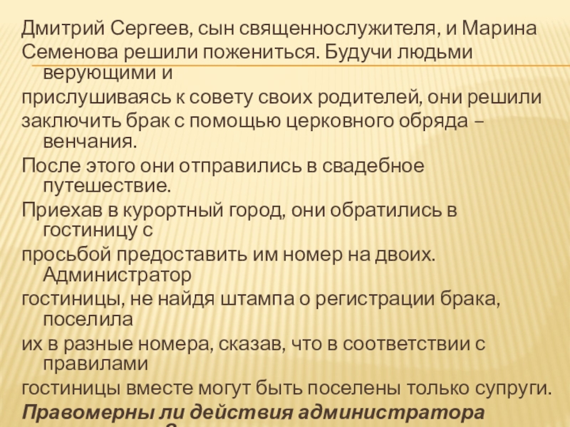 гостиницы, не найдя штампа о регистрации брака, поселила