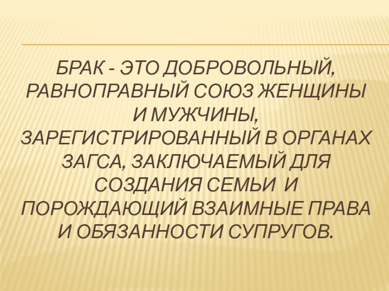 Брак - это добровольный, равноправный союз женщины и мужчины, зарегистрированный в