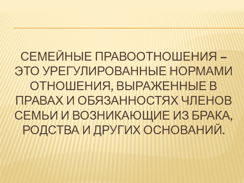 Слайд 7Семейные правоотношения – это урегулированные нормами отношения, выраженные в правах и