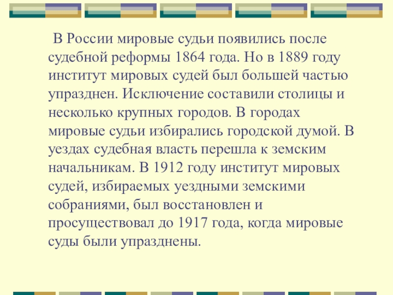единолично рассматривающее дела в мировом суде.
