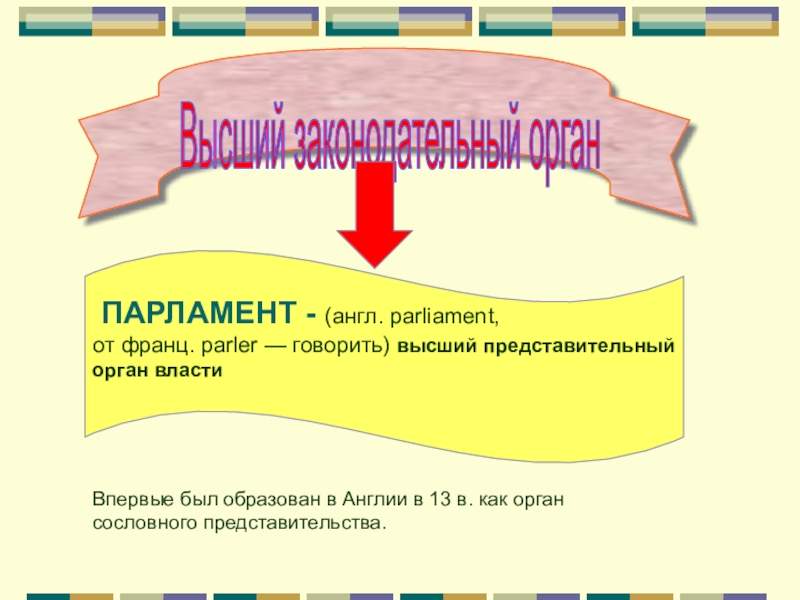 Впервые был образован в Англии в 13 в. как орган сословного представительства.