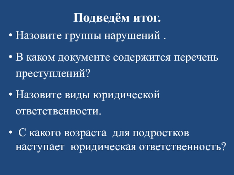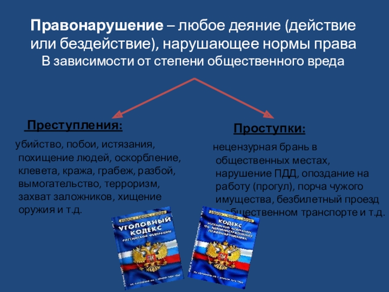Все нарушения закона (или правонарушения) разделяются на две группы в зависимости от _____________________________