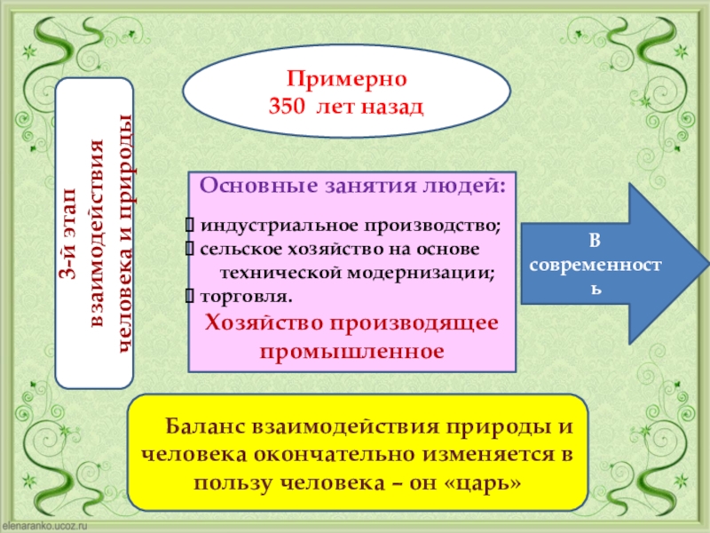 Баланс взаимодействия природы и человека окончательно изменяется в пользу человека – он «царь»