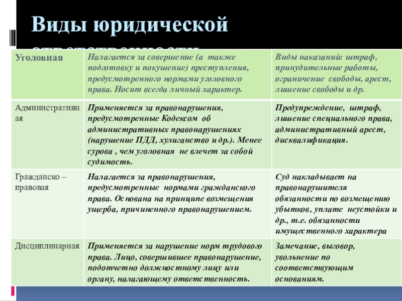 Презентация, доклад к уроку обществознания Юридическая ответственность
