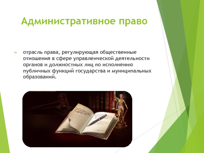 Административное правоотрасль права, регулирующая общественные отношения в сфере управленческой деятельности органов и должностных лиц по исполнению публичных функций государства и муниципальных образований.