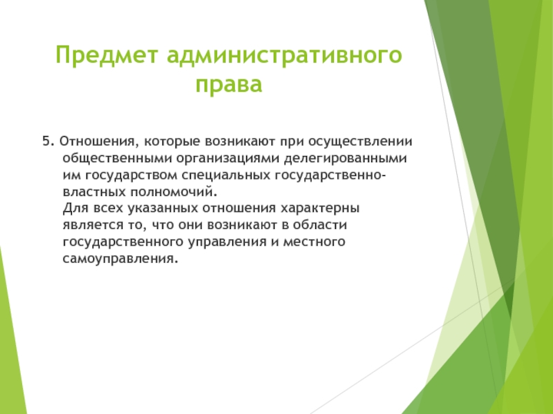 Предмет административного права5. Отношения, которые возникают при осуществлении общественными организациями делегированными им государством специальных государственно-властных полномочий. Для