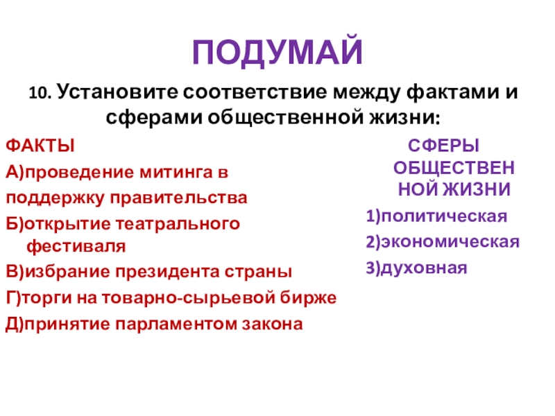 СФЕРЫ ОБЩЕСТВЕННОЙ ЖИЗНИ