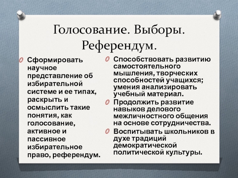 Воспитывать школьников в духе традиций демократической политической культуры.