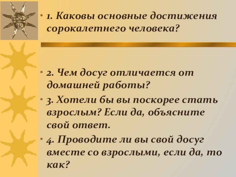 Это сайт презентаций, где можно хранить и обмениваться своими презентациями, докладами, проектами, шаблонами в формате PowerPoint с другими пользователями. Мы помогаем школьникам, студентам, учителям, преподавателям хранить и обмениваться учебными материалами.