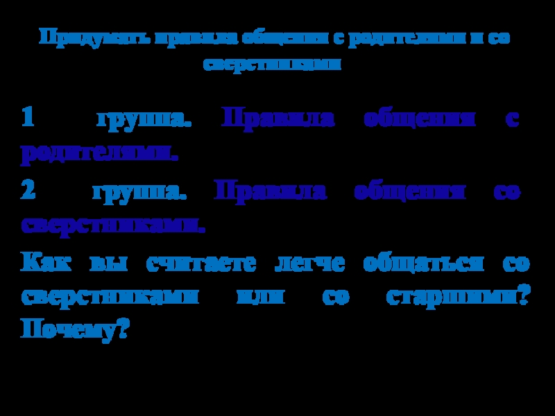 Слайд 12Придумать правила общения с родителями и со сверстниками.