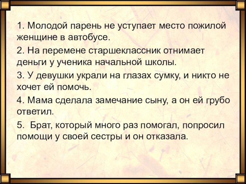 4. Мама сделала замечание сыну, а он ей грубо ответил.