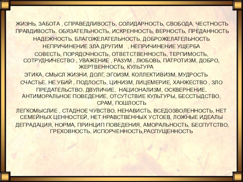 ПРАВДИВОСТЬ, ОБЯЗАТЕЛЬНОСТЬ, ИСКРЕННОСТЬ, ВЕРНОСТЬ, ПРЕДАННОСТЬ