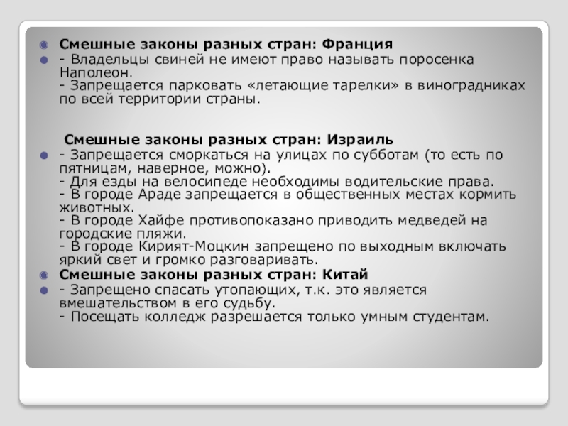 - В Лондоне избивать жен можно только после девяти часов вечера, дабы не мешать криками соседям.