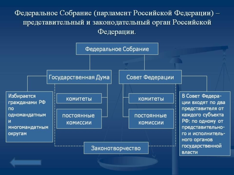 Федерации, в регионах — законодательными собраниями (парламентами).