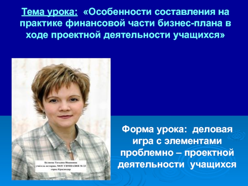 Форма урока: деловая игра с элементами проблемно – проектной деятельности учащихся