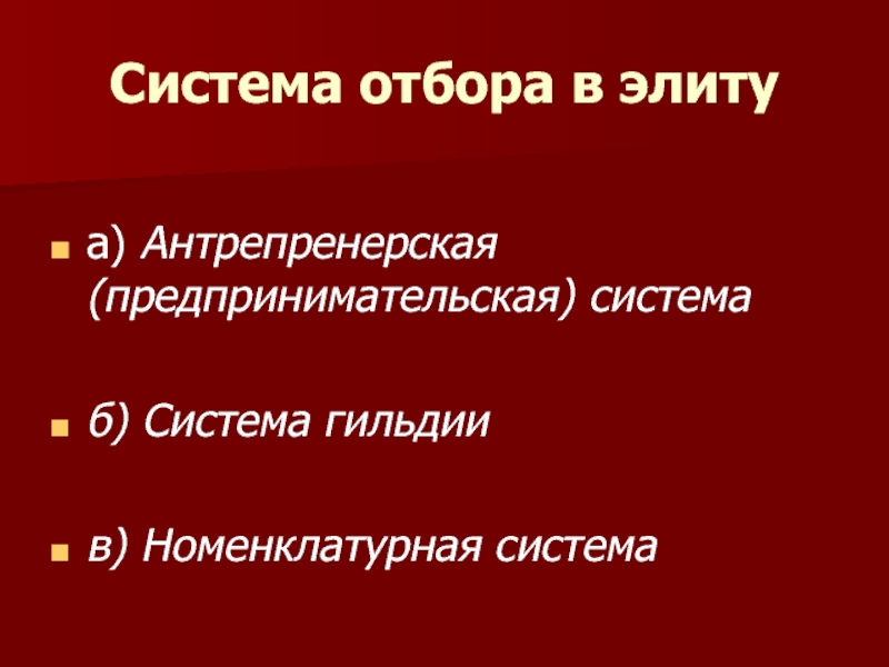 Слайд 11Система отбора в элиту