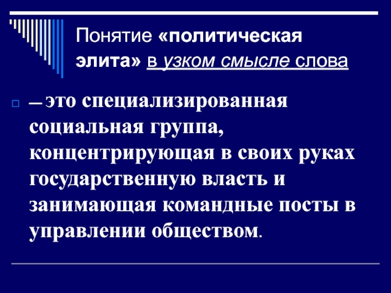 Слайд 8Понятие «политическая элита» в узком смысле слова