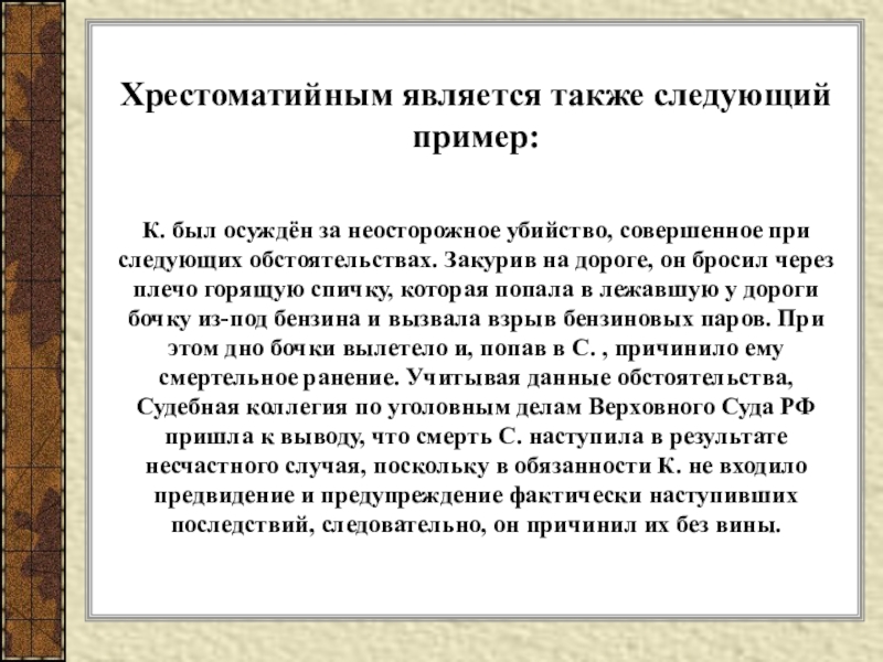 Казус – невиновное деяние, совершенное без осознания его общественной опасности, но в силу стечения обстоятельств повлекшее за собой опасные последствия.
