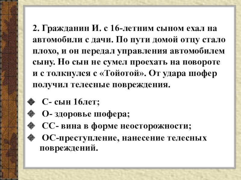 O- здоровье шофера;