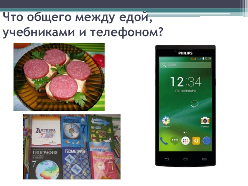 Слайд 6Что общего между едой, учебниками и телефоном?