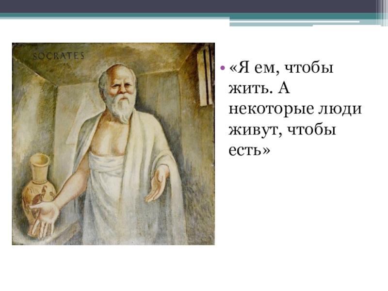 Слайд 16«Я ем, чтобы жить. А некоторые люди живут, чтобы есть»