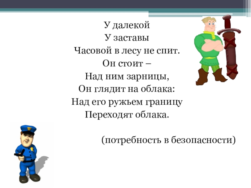У далекой У заставыЧасовой в лесу не спит.Он стоит – Над ним зарницы,Он глядит на облака:Над его