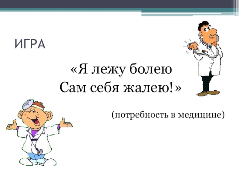 ИГРА«Я лежу болеюСам себя жалею!»(потребность в медицине)
