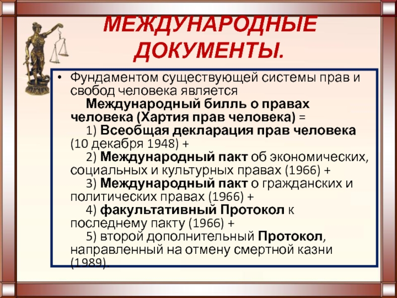 Слайд 9МЕЖДУНАРОДНЫЕ ДОКУМЕНТЫ.