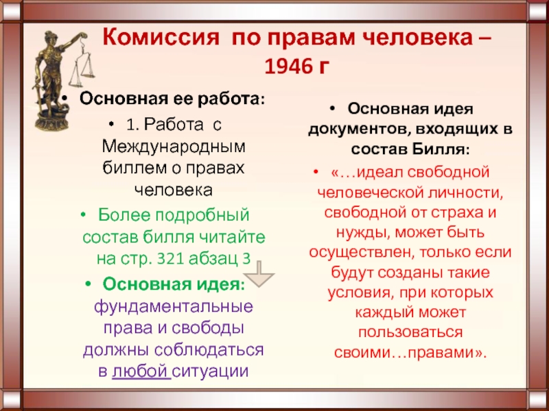 «…идеал свободной человеческой личности, свободной от страха и нужды, может быть осуществлен, только если будут созданы такие условия, при которых каждый может пользоваться своими…правами».