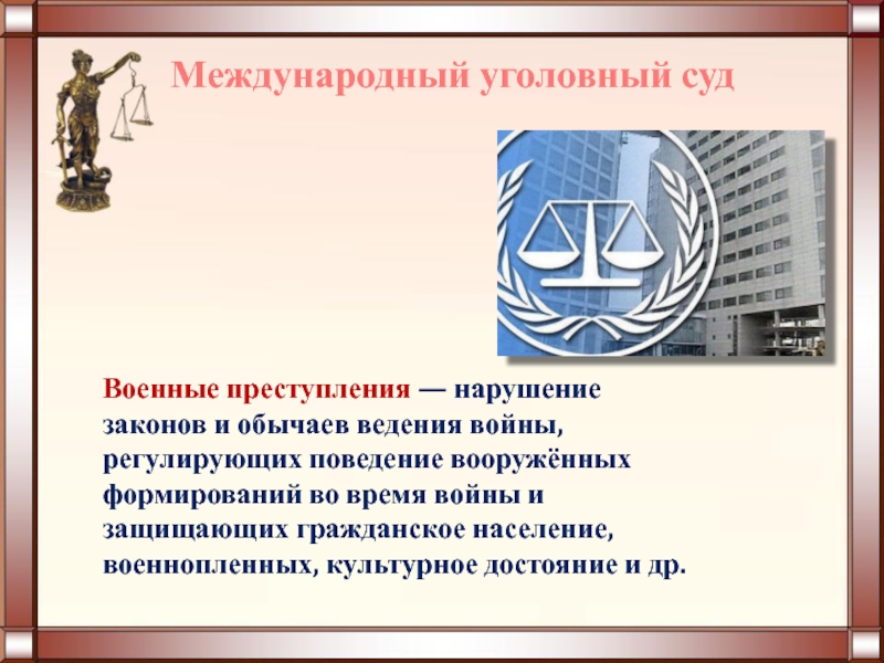Военные преступления — нарушение законов и обычаев ведения войны, регулирующих
