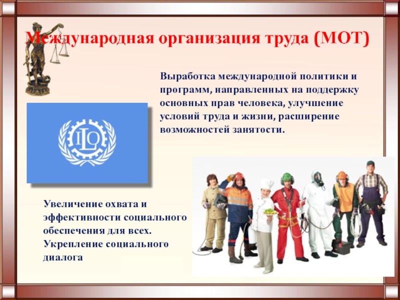основных прав человека, улучшение условий труда и жизни, расширение возможностей занятости.