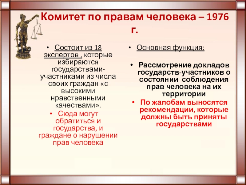По жалобам выносятся рекомендации, которые должны быть приняты государствами