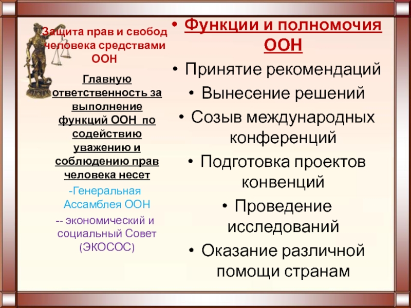 осуществляет иные полномочия, предусмотренные в Уставе ООН.