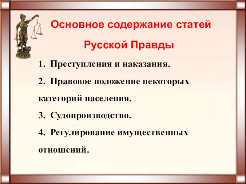 Слайд 7«РУССКАЯ ПРАВДА»-ПАМЯТНИК ПРАВА ДРЕВНЕРУССКОГО ГОСУДАРСТВА