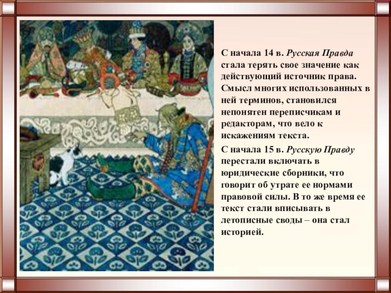 Слайд 14С начала 14 в. Русская Правда стала терять свое значение как