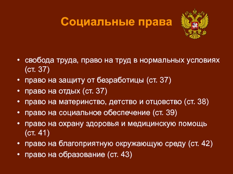свобода труда, право на труд в нормальных условиях (ст. 37)