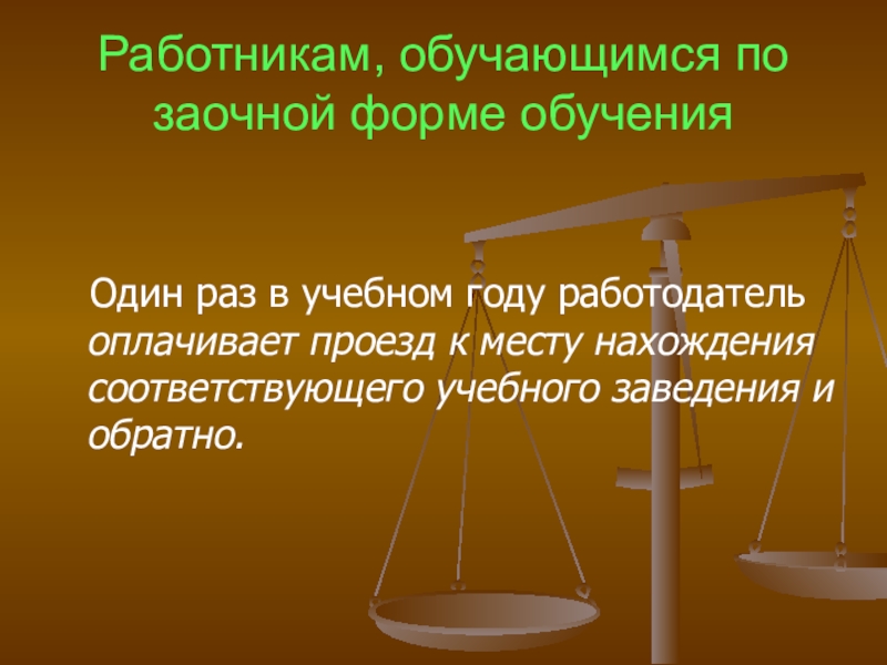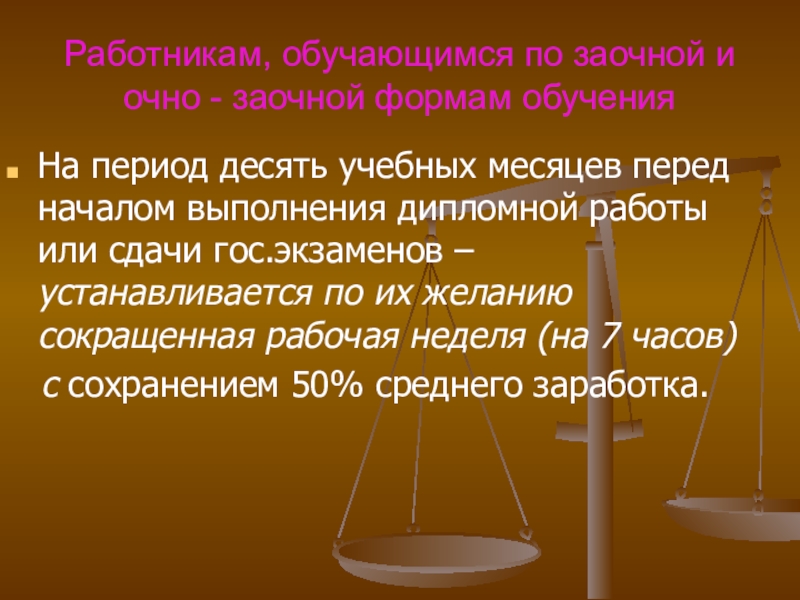 Слайд 50Работникам, обучающимся по заочной и очно - заочной формам обучения