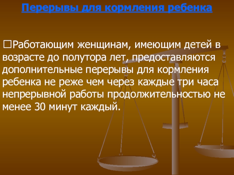 Слайд 8Перерывы для кормления ребенка