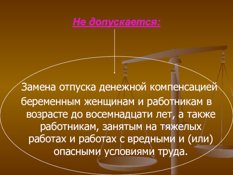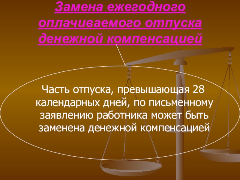 Слайд 32Замена ежегодного оплачиваемого отпуска денежной компенсацией