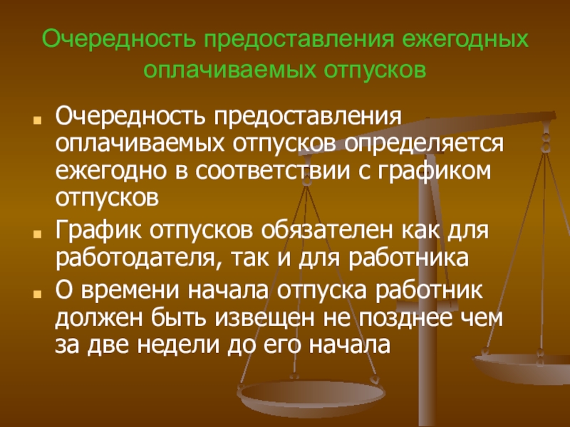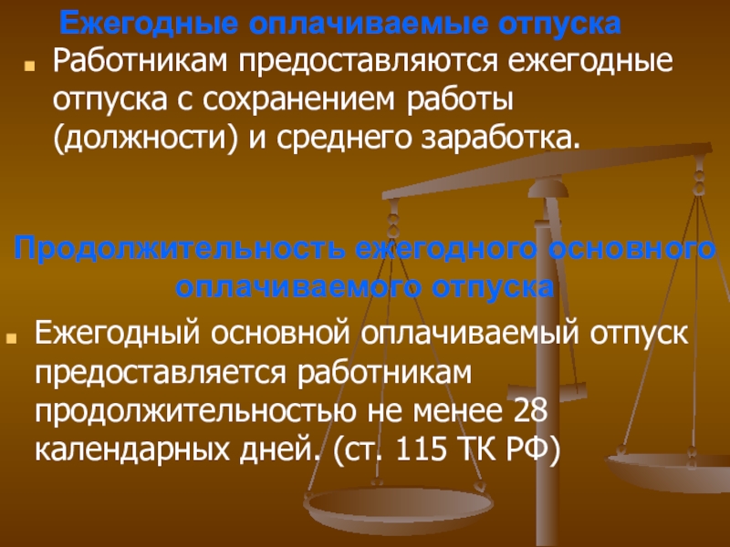 Слайд 16Ежегодные оплачиваемые отпуска