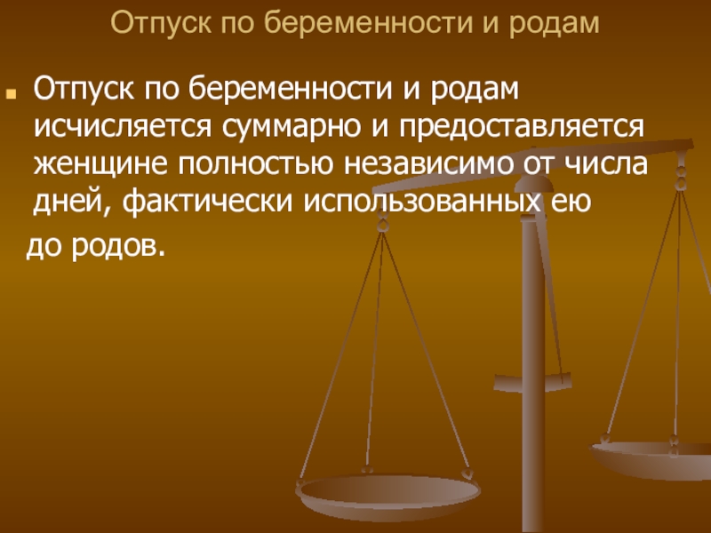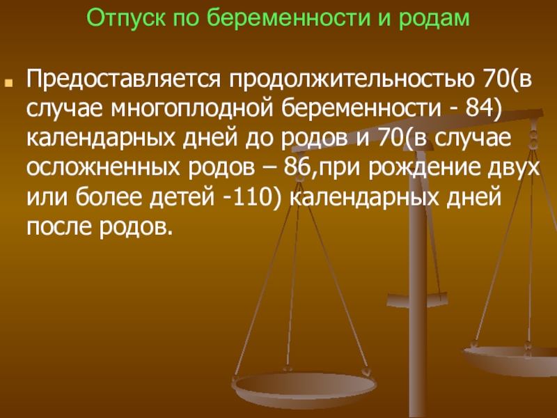 Слайд 40Отпуск по беременности и родам